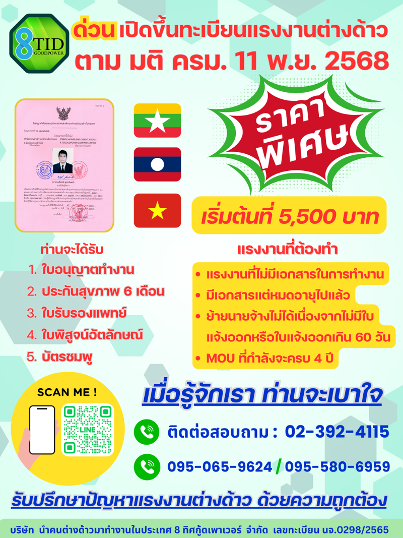 บริษัท นำคนต่างด้าวมาทำงานในประเทศ 8 ทิศกู้ดเพาเวอร์ จำกัด