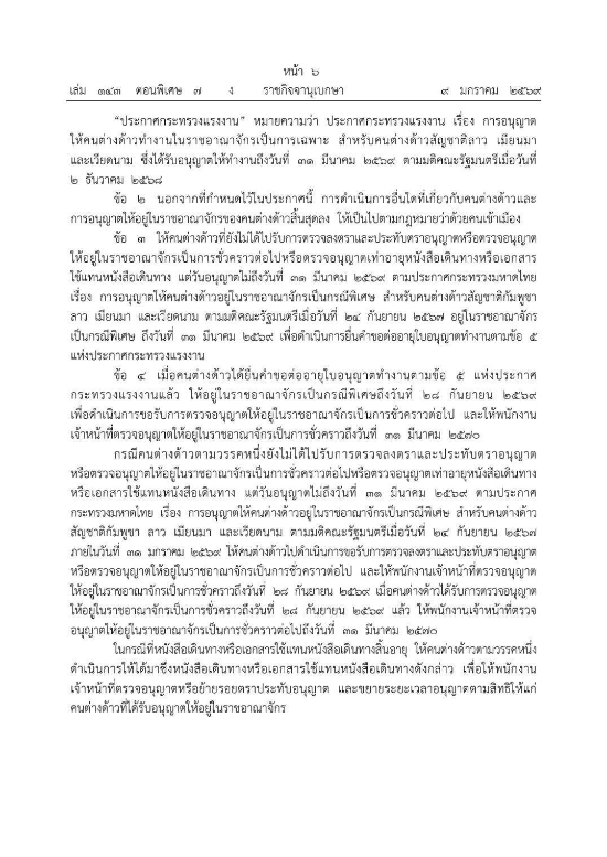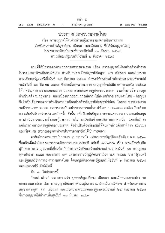 ประกาศ มท ให้ต่างด้าวอยู่ของ มติ 24 กย 68 ให้อยู่ได้ 1 ปี ถึง 31/3/70 พม่า ลาว เวียดนาม กัมพูชา