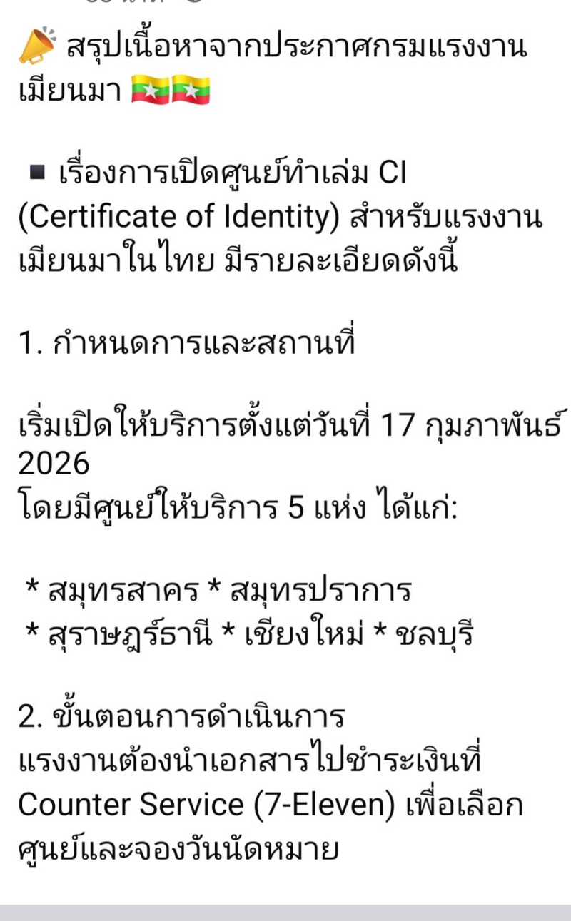 เนื่องจากยังมีผู้ที่ชำระค่าต่ออายุบัตรประจำตัวประชาชนที่ร้านเซเว่นอีเลฟเว่นอยู่ จึงได้ขยายเวลาการดำเนินการเป็นครั้งสุดท้ายไปจนถึงปี 2569 เพื่อป้องกันการสูญเสียโอกาสในการทำงานของแรงงานชาวพม่าที่ทำงานในประเทศไทย จึงจะขยายเวลาไปจนถึงวันที่ 16 มกราคม เพื่อให้แรงงานสามารถยื่นขอต่ออายุบัตรประจำตัวประชาชนได้โดยเร็วที่สุดก่อนหมดระยะเวลาที่กำหนด