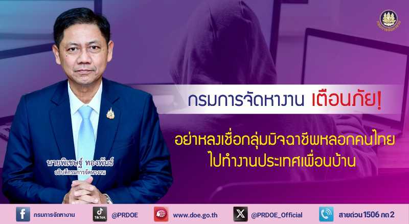 กรมการจัดหางาน เตือนภัย! อย่าหลงเชื่อมิจฉาชีพหลอกคนไทยไปทำงานประเทศเพื่อนบ้าน